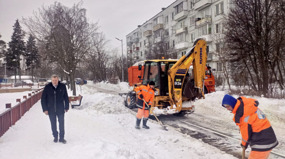 После обильных снегопадов городские службы проводят уборку и вывоз снега во дворах МКД. Проконтролировал ход уборки снега во дворе дома 10 по ул. Трофимова в мкр. Юбилейный.
