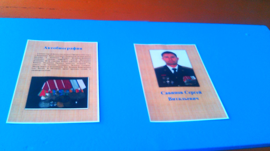 На парте размещена фотография героя, его автобиография, награды.