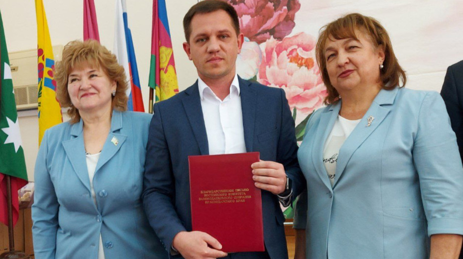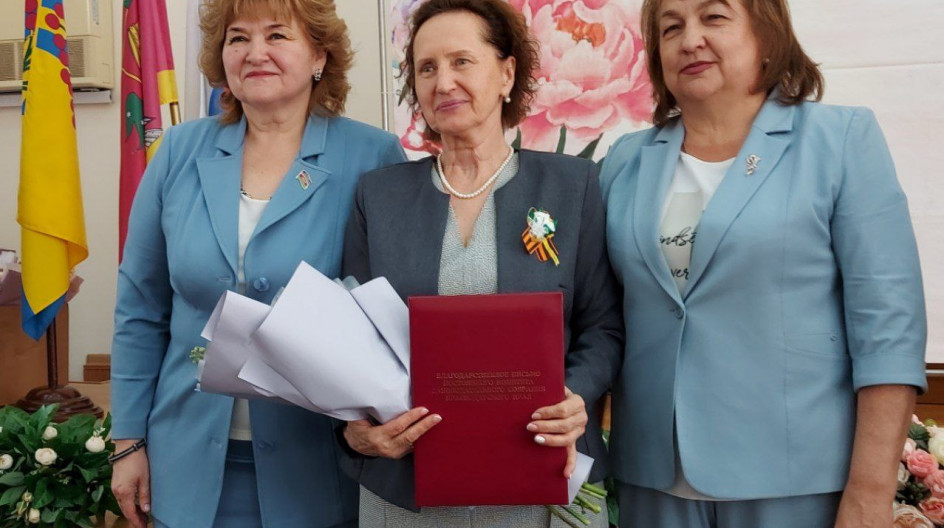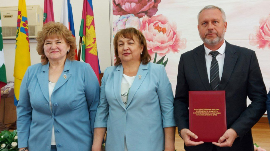 Жанна Беловол и Татьяна Коробова вручили всем главам сельских поселений района благодарственные письма постоянного комитета по вопросам местного самоуправления, административно-территориального устройства, социально-экономического развития территорий и информационной политики Законодательного Собрания Краснодарского края (председатель Дорошев А.А.).