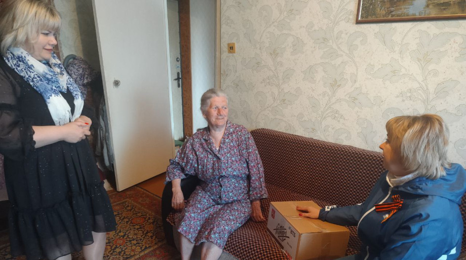В день празднования 79-й годовщины со Дня Победы в Великой Отечественной войне поздравили тружеников тыла, вдов, узников концлагерей. Навестили Мосину Марию Ивановну, вручили подарки и поздравительные открытки. Ей было 7 лет, когда немцы захватили деревню. Полтора года фашисты держали в узниках всех жителей и семью Марии, отняв жильё, домашних животных и право быть свободными.