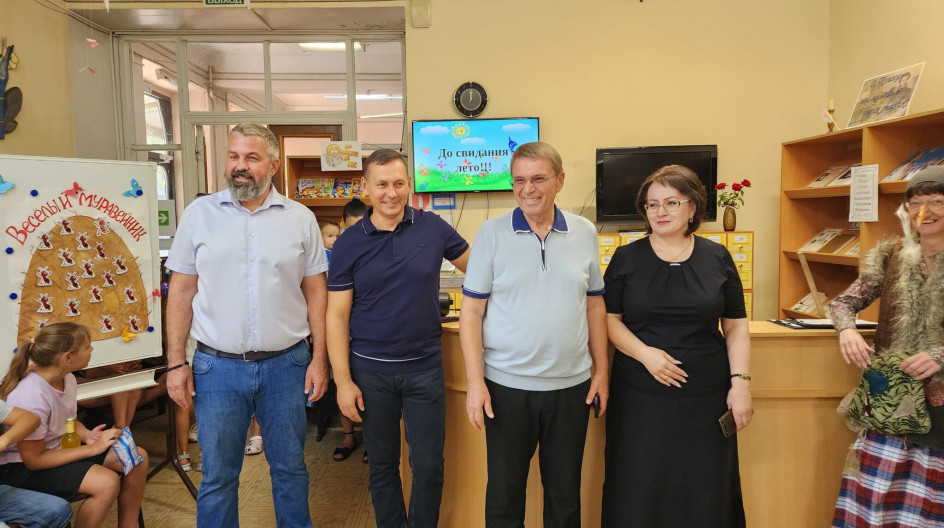 В Лазаревской центральной детской библиотеке по случаю закрытия летней досуговой площадки «Веселый муравейник» прошел праздник. Гостями юных читателей стали депутаты Городского Собрания Сочи по избирательному округу № 16 «Лазаревский» председатель Городского Собрания Сочи Виктор Филонов, председатель комитета по вопросам городского хозяйства, топливно-энергетического комплекса, транспорта и дорожного хозяйства ГСС, председатель Лазаревской территориальной депутатской группы ГСС Павел Афанасьев и председатель комитета по вопросам предпринимательства, инвестиций, информатизации и связи, потребительского рынка ГСС Александр Бурляев/