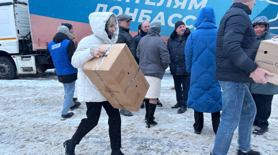 Груз отправляли от стен Свято-Троицей Сергиевой лавры. Фура собрала груз со всех отделений партии Единая Россия Московской области: это средства личной гигиены, продукты питания длительного хранения, кондитерские изделия и товары для детей.