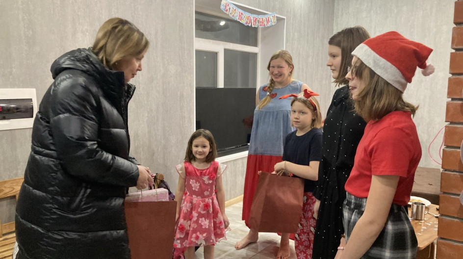 Посетила семью, где самая маленькая сестренка приняла участие в акции "Елка желаний", написав письмо и рассказав о своих близких. Приятно очутиться в теплой обстановке, где совсем скоро появится пятый ребенок. Все четыре сестры получили подарки для творчества и развития.