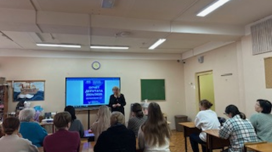 Выступила с отчетом работы депутата в 2024 году перед сотрудниками образовательной организации СОШ №11.