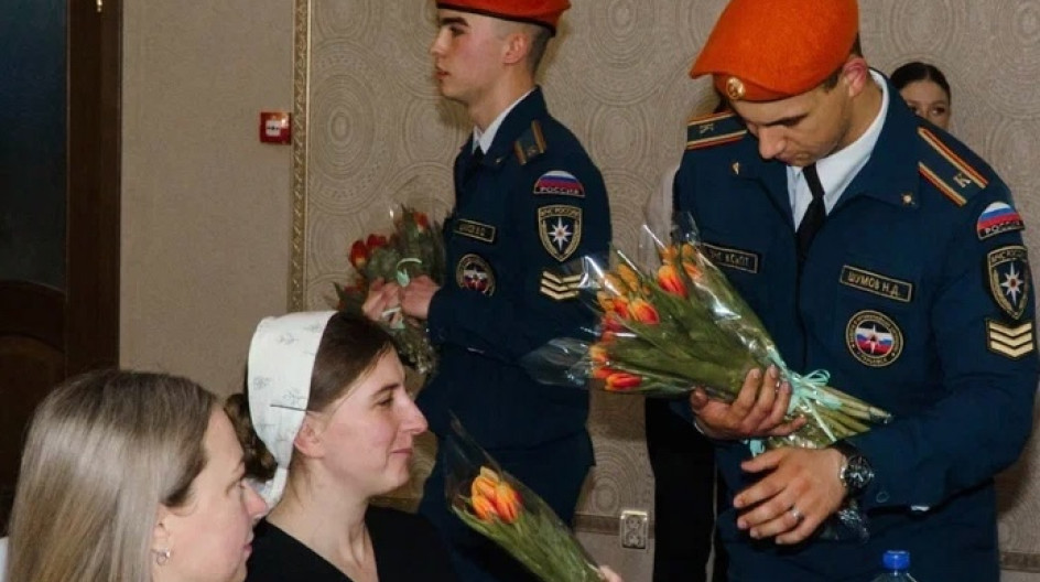 Передал поздравления и цветы для милых дам.