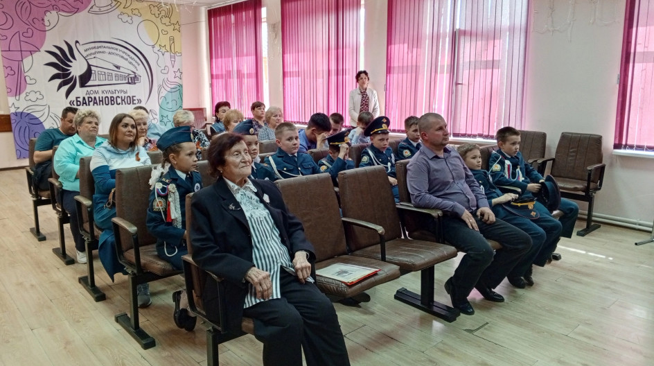 В ДК с. Барановское состоялось мероприятие "Чтобы помнили!", которое прошло в рамках проекта "Связь поколений". На мероприятие была приглашена жительница с. Барановское Петрова Елена Николаевна, чьё детство прошло в годы войны. Она рассказала присутствующим в зале о тяжёлой жизни в военные годы.