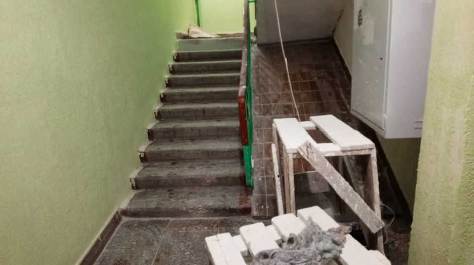 Рабочие приступили к ремонту полов - делают стяжку. Затем будет отремонтирована входная группа.