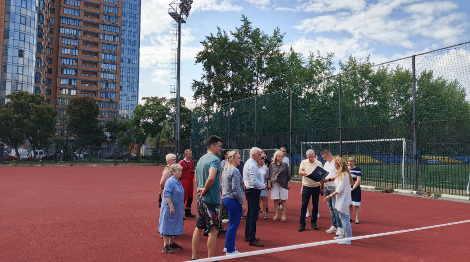 В рамках проекта «Детский спорт» совместно с представителями Администрации и активными жителями провели мониторинг хода строительства универсальной спортивной площадки.