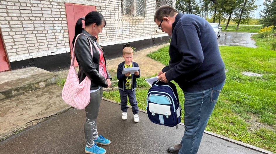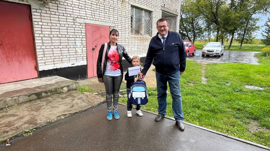ОЖЕРЕЛЬЕ. Передал рюкзак с полным комплектом школьных принадлежностей в подарок от Губернатора Андрея Воробьева будущему первокласснику Станиславу