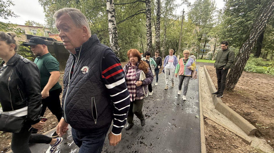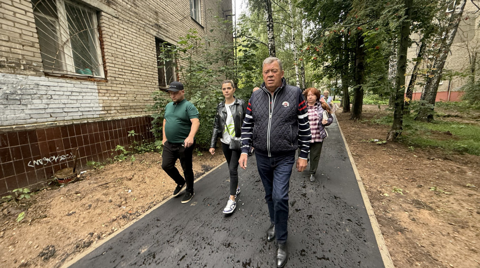 С представителями подрядчика и довольными жителями осмотрели новую благоустроенную дорожку.