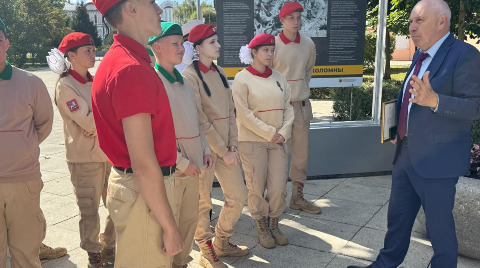Одной из первых выставку посетила Юлия Фролова - правнучка учительницы Евдокии Чекалиной, которая в годы войны работала в начальной школе села Никульское и стала основоположником их большой учительской династии. После торжественной части организовал урок истории под открытым небом для школьников 10 класса. 50 плакатов показывают жизнь коломенцев в 1941-1945 г.г.