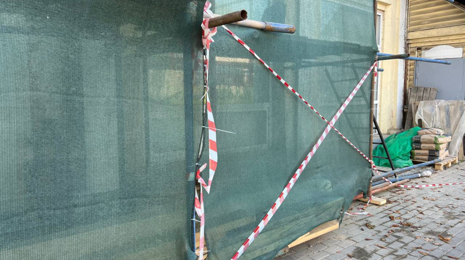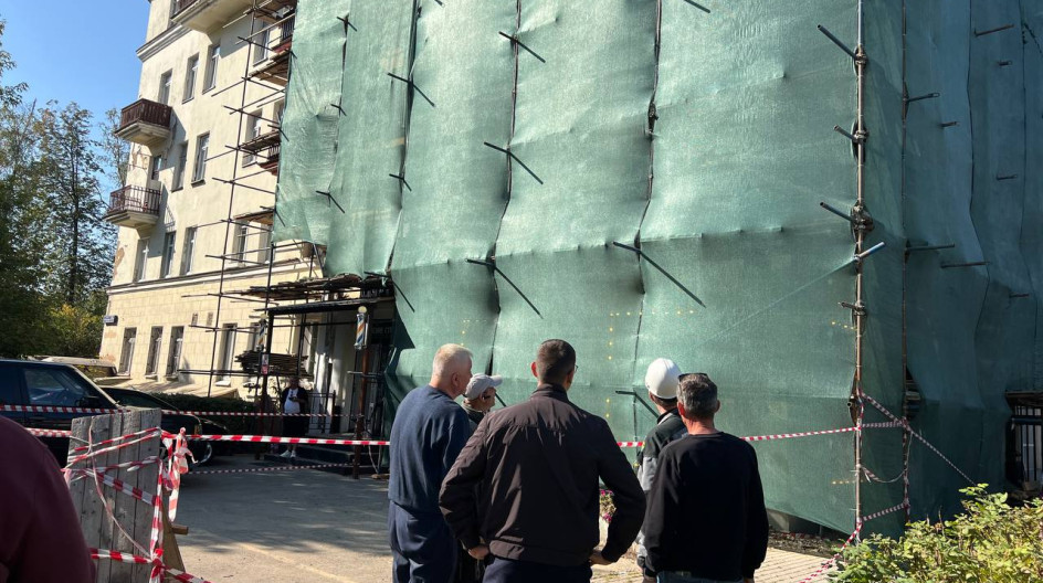 Он добавил, что дом большой, строители выставляют леса и будут переходить от фаса к фасаду по мере выполнения работ.