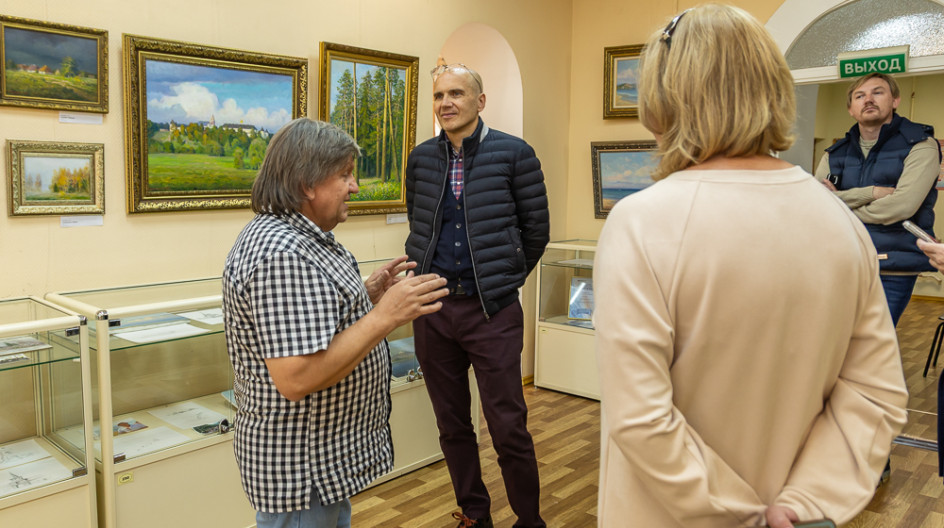 Депутат Московской областной Думы Дмитрий Голубков в ходе рабочей поездки посетил Одинцовский краеведческий музей. Вместе с представителями администрации муниципалитета и сотрудниками учреждения парламентарий обсудил перспективы развития музейного пространства, взяв за пример проходящую здесь выставку известного современного художника Александра Ивашко.