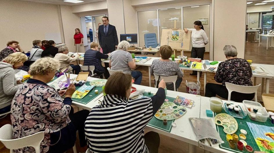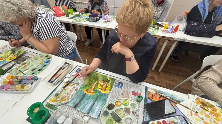 В рамках деятельности "долголетов" заглянул на занятие по живописи. Мероприятие проходило в уютной и дружеской обстановке.