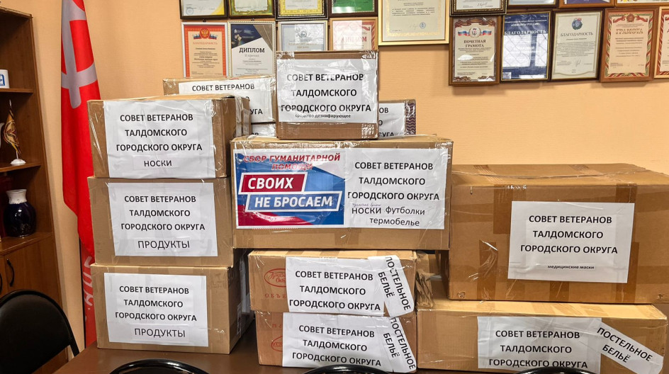 Принаяла участие в отправке гуманитарной помощи участникам СВО. Ветеранские организации Талдомского городского округа участвуют в акции "Своих не бросаем". В октябре собрано и отправлено более 200 кг. груза. Это постельное белье, продукты питания, медикаменты, сладости. Груз будет доставлен в один из госпиталей, где проходят лечение бойцы СВО.