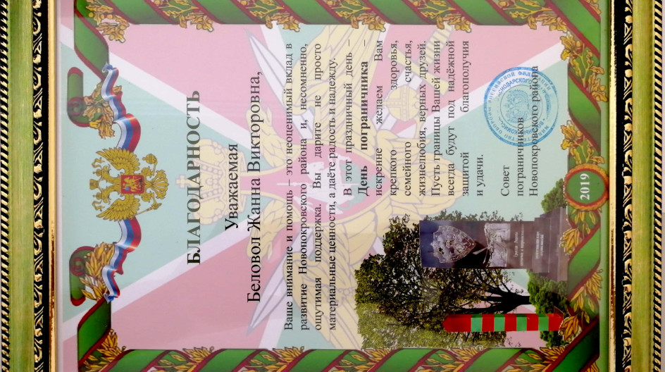 Депутат Законодательного Собрания Жанны Беловол направила ветеранам пограничной службы Новопокровского района приветственный адрес, в котором поздравила всех защитников рубежей нашего Отечества с Днем пограничника. Пожелала всем крепкого здоровья, счастья, благополучия, тепла и уюта в семьях, и, конечно, успехов в важном государственном деле - охране святых рубежей нашей Родины.