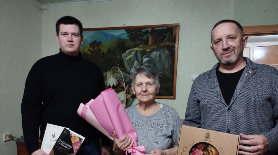 Вручил памятные подарки от Губернатора Московской области Андрея Юрьевича Воробьёва и от главы муниципального округа Шатура Никола Николаевича Прилуцкого. Пожелал Александре Петровне крепкого здоровья, внимание и заботу близких и конечно же долгих лет жизни!