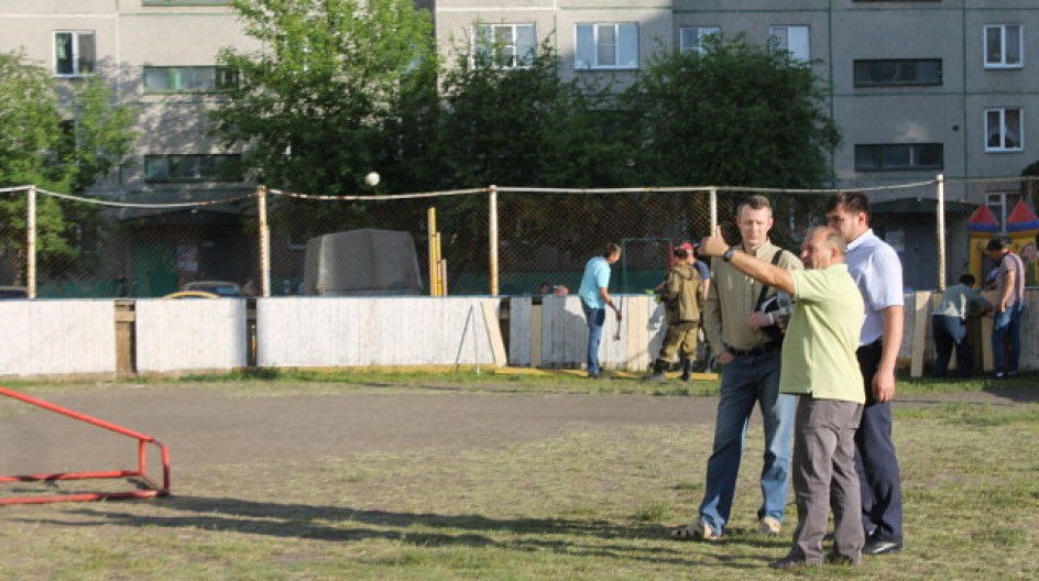 В этом кубике домов есть корт. Там ребятишки занимаются из всех близлежащих дворов и из центра детского творчества "Аэлита". Приехали мы туда этот корт обновить: доски поменять, подкрасить. Порадовало что много пацанов с удовольствием нам помогали. А огорчило то, что взрослых вышло 4 человека. А остальным оно как то и не надо почему то.