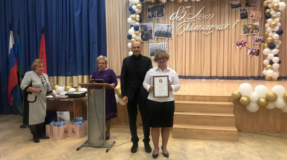 1 ноября 2019 года депутат Московской областной Думы Дмитрий Голубков вместе с Председателем совета депутатов Одинцовского городского округа Татьяной Одинцовой поздравил коллектив 7 гимназии города Одинцово с 85-летием. Лучшие сотрудники были награждены благодарственными письмами и почетными грамотами Московской областной Думы.