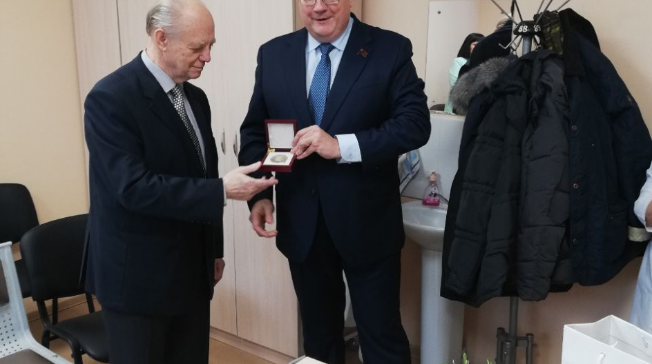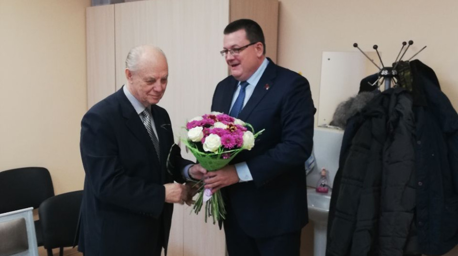 С юбилеем заслуженного врача приехал поздравить в этот день председатель Комитета по вопросам охраны здоровья, труда и социальной политики Андрей Голубев: