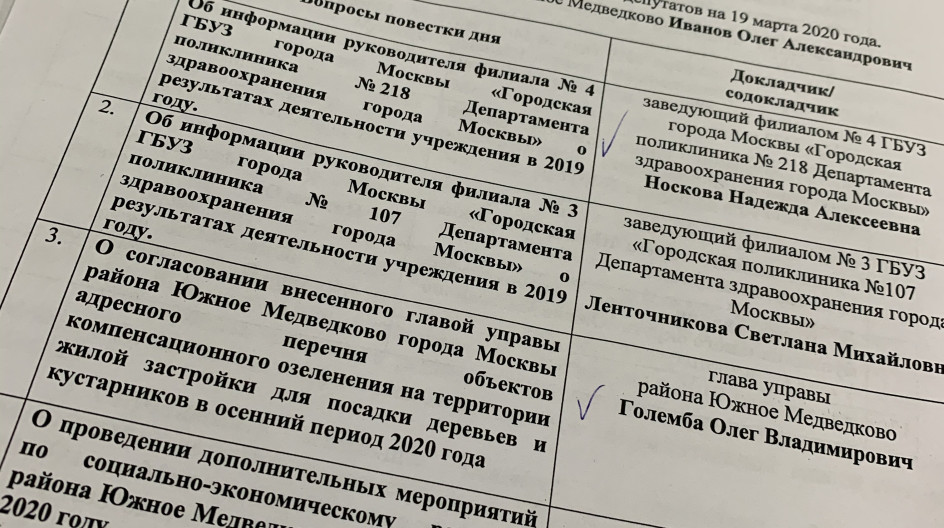 Очередное заседание Совета депутатов муниципального округа Южное Медведково, рассмотрели ряд вопросов, заслушали отчёт городских поликлиник 218 и 107.