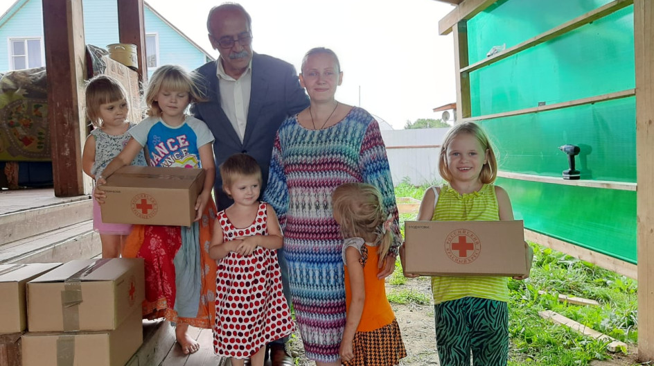 Вручение продуктовых и гигиенических наборов