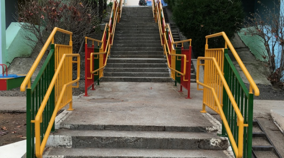 Детский сад № 34: проведена реконструкция опорной стены и главной уличной лестницы с установкой перил, произведен ремонт помещений и лестничных маршей корпуса с 1 по 3 этаж, проведены работы по благоустройству 4 детских площадок, приобретена и установлена метеостанция (с устройством бетонных столбов) а также установлена решетка на сеть ливневой канализации и ограждение.