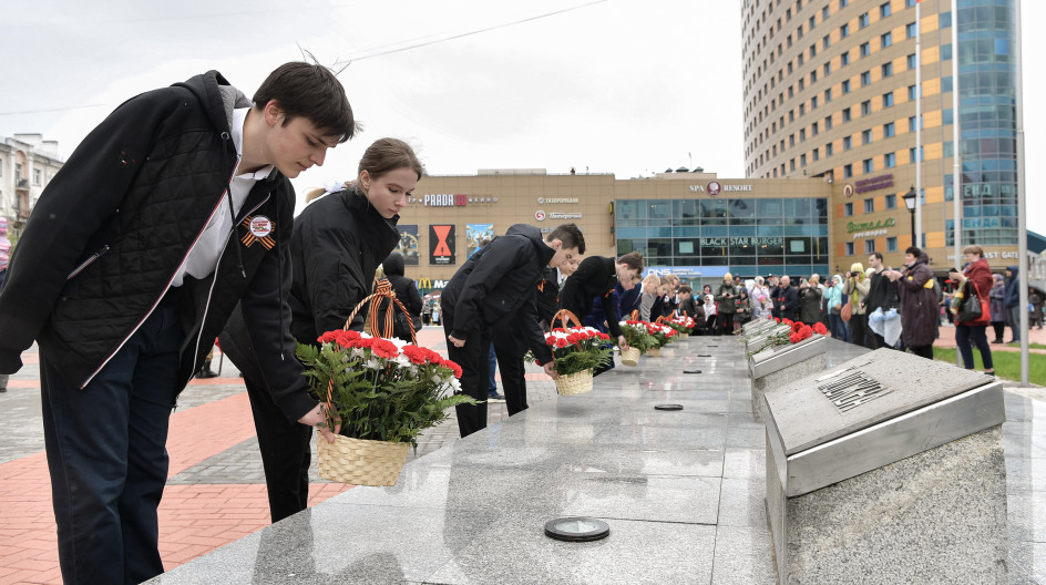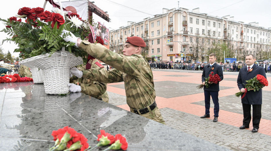 Председатель Мособлдумы Игорь Брынцалов и глава Балашихи Сергей Юров возложили цветы к Вечному огню. Участники митинга почтили минутой молчания память всех ушедших из жизни героев войны.
