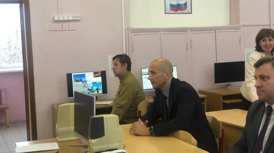 Школьники тепло встретили гостей и пригласили их на открытый урок истории, который проводился с использованием приобретенного оборудования. Дмитрий Голубков высоко оценил его состояние и кругозор ребят: