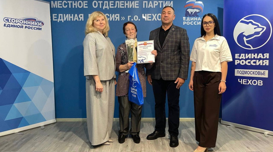 Совместно с Начальником Управления образования муниципального округа Чехов, координатором партийного проекта «Новая школа», членом партии «Единая Россия» Ириной Заболотневой и Председателем Местного совета сторонников Партии Еленой Терник в преддверии праздничного дня - Дня воспитателя и всех дошкольных работников поздравили ветерана педагогического труда - Людмилу Королькову, посвятившую 50 лет своей жизни дошкольному воспитанию в МБДОУ «Детский сад №1» и вручили Людмиле Корольковой цветы и благодарственное письмо от Главы муниципального округа Чехов, Секретаря местного отделения партии Михаила Собакина.