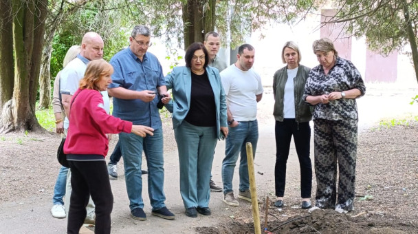 В рамках контроля за проведением благоустроительных работ вместе с заместителем главы Ириной Усачёвой, представителями подрядной орагнизации и жителями осмотрели ход работ по строителству тротуарно-тропиночной сети в зеленой зоне в посёлке Пограничный.