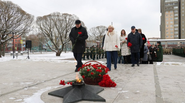 В канун празднования Дня защитника Отечество принял участие в церемонии возложения цветов к вечному огню и стеле «Город воинской доблести» на площади Славы.