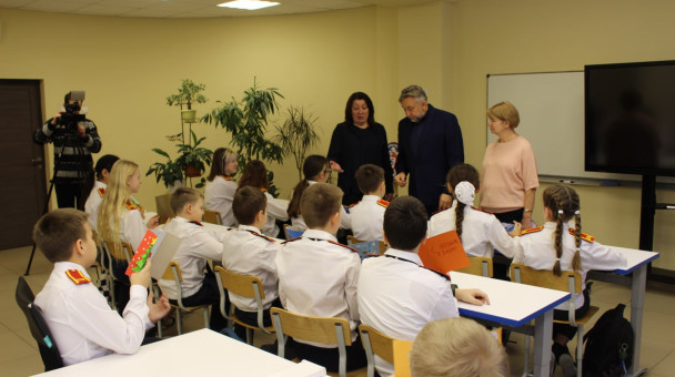 Сегодня в гости к кадетам школы пришли депутат Московской областной Думы О.В.Жолобов , директор МКУ "Гжель" Н.А.Шеренина и депутат Совета депутатов Раменского го, директор школы В.А.Малкина.