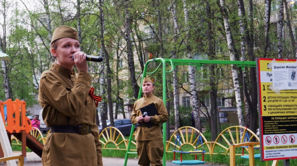 После Общероссийской минуты молчания, в 19.00 часов, в двух дворах округа прошли музыкальные выступления. По каждому из адресов: Московский проспект, д. 28, 30 и Пушкино, ул.50 лет ВЛКСМ, д. 15 артисты местных Домов культуры исполнили порядка пяти песен, посвященных Великой Отечественной войне. Одной из них, конечно же, стала «День Победы».