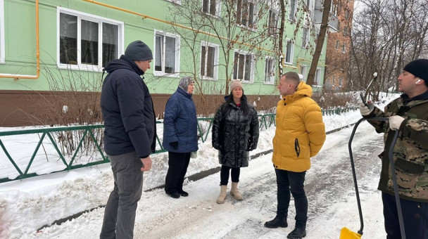 В рамках проекта «Жители МКД» депутаты фракции «Единая Россия» Анна Дунаева, Александр Бушев, Артём Садула проверили содержание придомовых территорий в Пушкино силами МБУ ЖЭУ. Со слов жителей на территории дворов ежедневно производится уборка снега до подъездов, детские площадки убираются регулярно, в подъездах чисто.