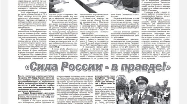 Очередной выпуск "Депутатского вестника" посвящен первым результатам работы нового состава депутатского корпуса муниципалитета, реализации приоритетных проектов в регионе, подписанию соглашения о сотрудничестве со Штабом общественной поддержки в РА... О взаимодействии с ветеранскими организациями и своей разносторонней общественной деятельности рассказал депутат Горсовета, ветеран СВО, подполковник запаса, кавалер ордена Мужества Андрей Васнецов.