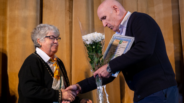 Поздравил с праздником представителей мудрого поколения Пожелал доброго здоровья, хорошего настроения и активного долголетия, Поблагодарил за многолетний добросовестный труд и огромный вклад в развитие Талдомского округа.