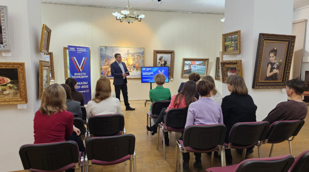 В выставочном зале дома Широкова отчитался перед сотрудниками выстовочного зала и работниками культуры о результатах работы в 2024 году.