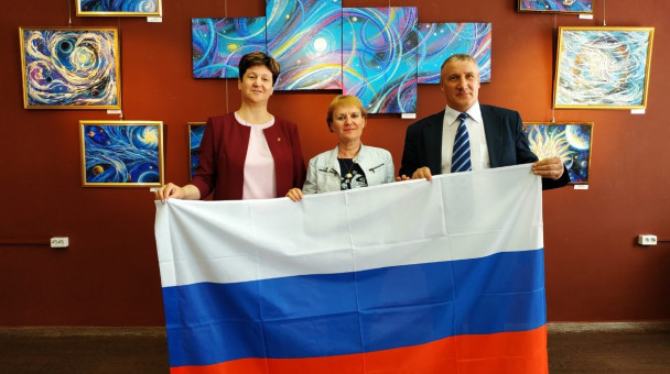 За неделю до Дня России представители партии "Единая Россия" (ЗАТО Железногорск) передали музею флаг России большого размера для проведения в музее массовых мероприятий. https://vk.com/id10338072?z=photo449149524_456239398%2Fwall10338072_689