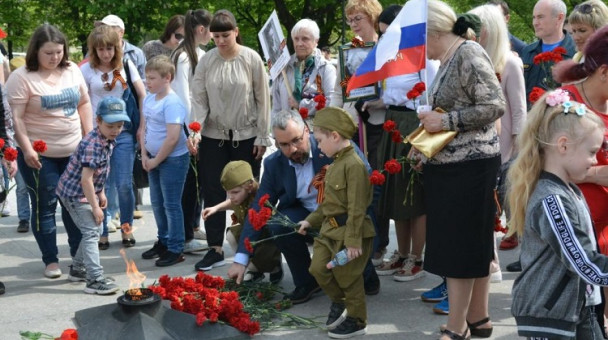 Мероприятия по традиции началось с минуты молчания в память о павших на полях сражений. После чего все собравшиеся возложили цветы к мемориалу «Воина-освободителя».