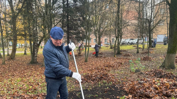 Принял участие в субботнике. Совместно с работниками учереждений и актывными жителями муниципального округа Шаховская провели уборку от листвы и мусора на улице Базаева.