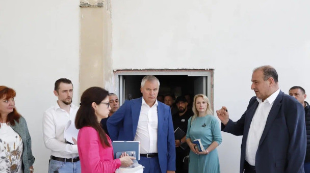 проверил ход строительства школы на 850 мест в микрорайоне Финский. В настоящий момент готовность объекта составляет 70%. В школе уже смонтированы лифты, выполнена разводка по электрике. Активно ведутся работы по предчистовой отделке, укладывается напольное покрытие. На будущем стадионе школы производится завоз и планирование грунта. В течение месяца планируется завершить работы по монтажу фасада. На данный момент на объекте работы производятся в две смены, задействовано в строительстве 180 человек.