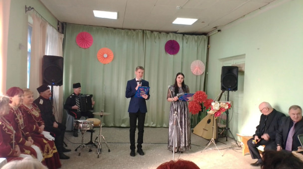 Приняла участие в проведении в Социально-культурном центре концертной программы «Слава защитникам Родины»