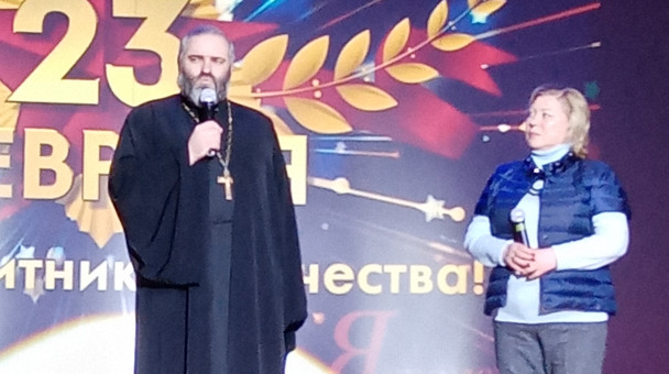 На праздничном мероприятии ко Дню Защитника Отечества вместе с отцом Сергием Бернадским Благочинным Яхромского церковного округа поздравила всех защитников Отечества с праздником. Желаю Вам крепкого здоровья, мирного неба над головой, любви, семейного благополучия.