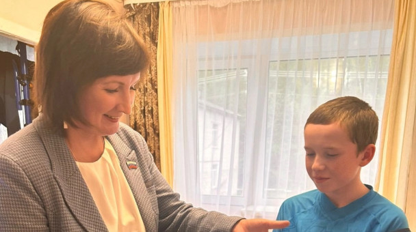 Женское движение Великоустюгского округа активно принимает в ней участие. Вручила наборы школьных принадлежностей первокласснице Ане из семьи участника СВО и Никите из Красавино.