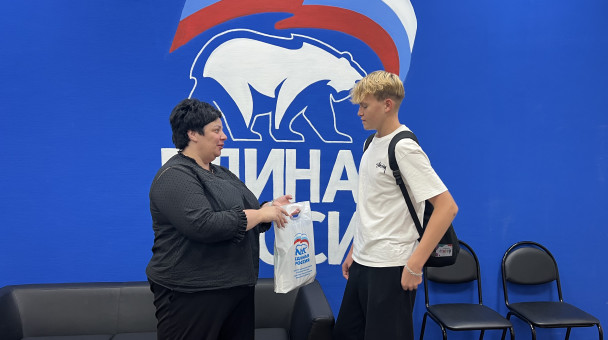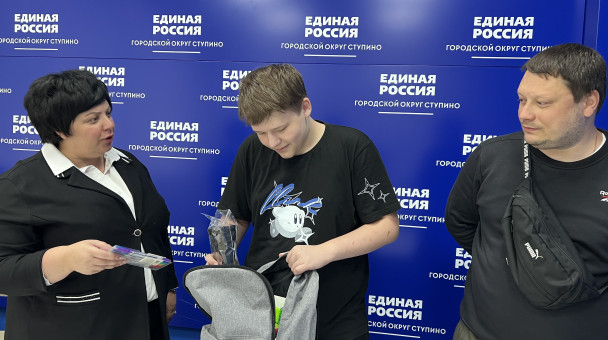 В общественную приемную «Единой России» обратилась жена участника СВО, который ушел защищать Родину из нашего города. Она попросила помощи в подготовки сына Алексея к школе. Вручила рюкзак с канцедярскими принадлежностями. Вручила в общественной приемной МОП "Единая Россия"