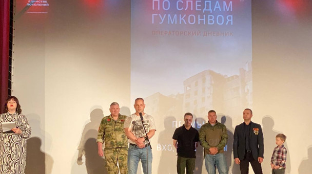 С коллегами депутатами и коллегами по гумконвою, просмотрели премьеру фильма "По следам гумконвоя", фильм создал и проводил съемки оператор местного телевидения ТВЭЛ, не однократно вместе с нами посещающий зону СВО.