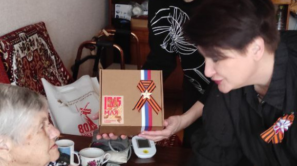 Татьяна Жукова передала поздравление с Днём Победы от главы Николая Николаевича Прилуцкого труженице тыла Кирюшкиной Нине Васильевне, которая проживает в посёлке Бакшеево. На долю Нины Васильевны выпало немало испытаний в годы войны, её трудовой и жизненный путь является примером для нашего поколения