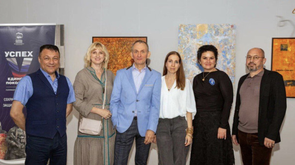 В экспозиции представлены работы Виктории Калининой и Марины Павловой. В картинах заложены элементы чертежей проектов, которые реализовываются в Лобне или будут выполнены в ближайшем будущем.