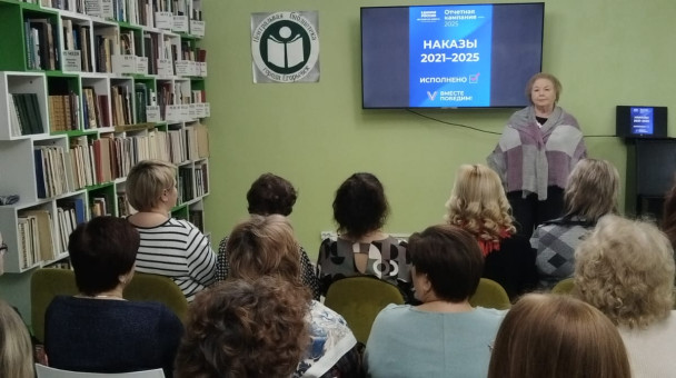 6 февраля провела отчет о своей работе в качестве депутата Совета депутатов муниципального округа Егорьевск перед сотрудниками и посетителями Муниципального учреждения культуры "Егорьевская централизованная библиотечная система" , расположенной в 3 микрорайоне, д. 4.